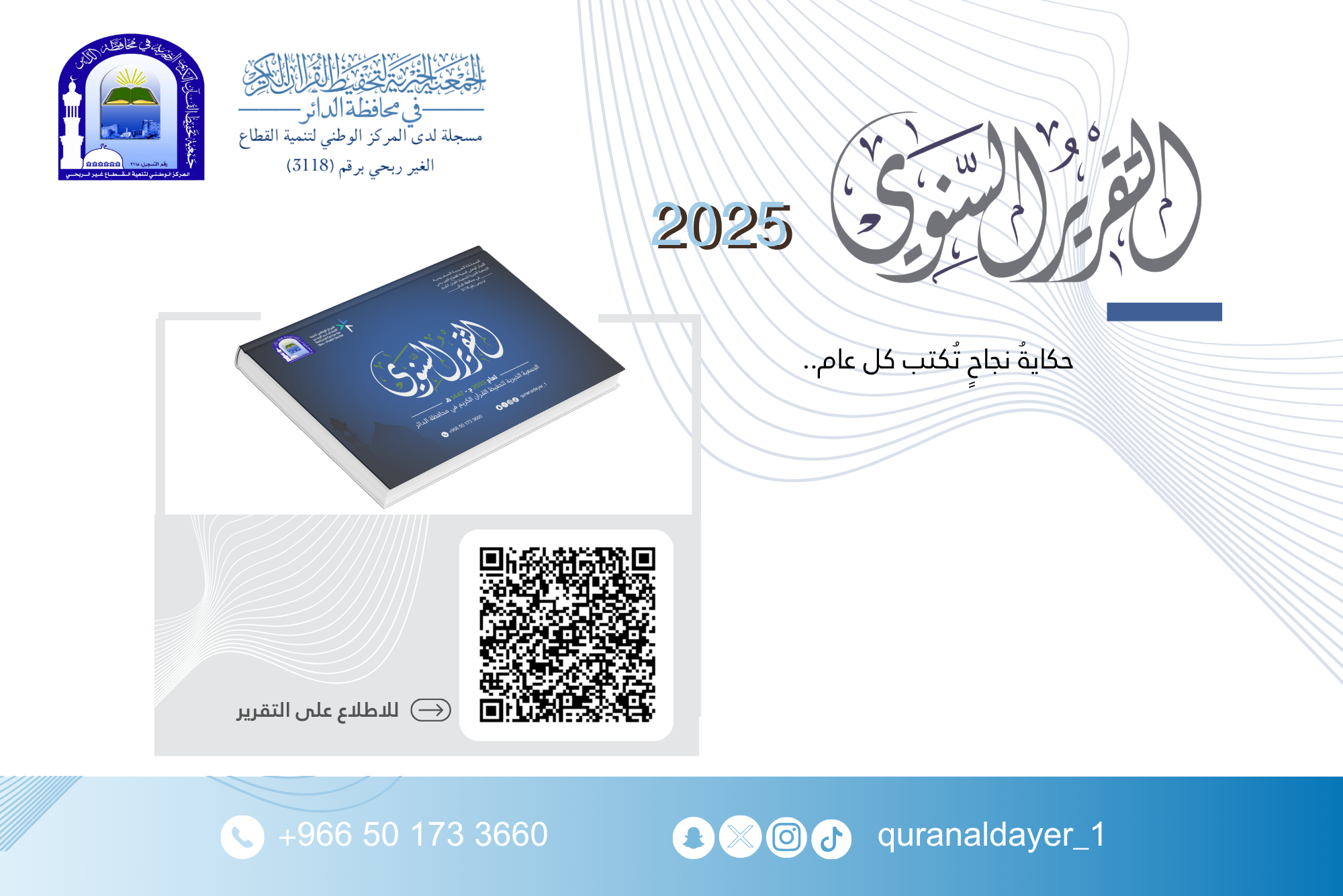 تبارك الجمعية الخيرية لتحفيظ القرآن الكريم في محافظة الدائر لطلابها وطالباتها، تأهلهم للتصفيات الختامية في مسابقة الصوت الندي لعام 1447هـ،