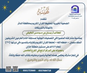 أعلنت الجمعة الخيرية لتحفيظ القرآن الكريم بمحافظة الدائر عن توقيع عقد شراكة مجتمعية مع مجمع ميديسن الطبي، وذلك في إطار تعزيز التعاون المشترك وخدمة المجتمع.